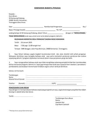 Up to 24 cash back SURAT AKUAN KEBENARAN IBU BAPAPENJAGA MENYERTAI AKTIVITI KOKURIKULUM LUAR Saya Nama. Baca versi flipbook dari KERJA KURSUS PENGAJIAN AM. Anda boleh menamatkan langganan ini pada bila-bila masa melalui.